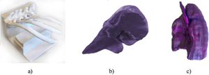 3D printed anatomical models generated from medical imaging data using 3D Slicer and Seg3D. Part of the ribcage (a), the liver (b), and the right lung (c). |