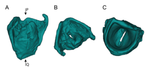 Publication: PLoS One. 2017 Apr 5;12(4):e0174235. PMID: 28380079 | PDF Authors: Leung C, Duclos KK, Grünbaum T, Cloutier R, Angers B. Institution: Department of Biological Sciences, Université de Montréal, Montreal, Quebec, Canada. Abstract: The effect of the environment may result in different developmental outcomes. Extrinsic signals can modify developmental pathways and result in alternative phenotypes (phenotypic plasticity). The environment can also be interpreted as a stressor and increase developmental instability (developmental noise). Directional and fluctuating asymmetry provide a conceptual background to discriminate between these results. This study aims at assessing whether variation in dentition and shape of pharyngeal arches of the clonal fish Chrosomus eos-neogaeus results from developmental instability or environmentally induced changes. A total of 262 specimens of the Chrosomus eos-neogaeus complex from 12 natural sites were analysed. X-ray microcomputed tomography (X-ray micro-CT) was used to visualize the pharyngeal arches in situ with high resolution. Variation in the number of pharyngeal teeth is high in hybrids in contrast to the relative stability observed in both parental species. The basal dental formula is symmetric while the most frequent alternative dental formula is asymmetric. Within one lineage, large variation in the proportion of individuals bearing basal or alternative dental formulae was observed among sites in the absence of genetic difference. Both dentition and arch shape of this hybrid lineage were explained significantly by environmental differences. Only individuals bearing asymmetric dental formula displayed fluctuating asymmetry as well as directional left-right asymmetry for the arches. The hybrids appeared sensitive to environmental signals and intraspecific variation on pharyngeal teeth was not random but reflects phenotypic plasticity. Altogether, these results support the influence of the environment as a trigger for an alternative developmental pathway resulting in left-right asymmetry in dentition and shape of pharyngeal arches. Dicom files were subsequently loaded within the open-source software 3D Slicer (Version 4.5 ). 3D models were rendered from dicom files using the editor module within 3D Slicer and the thresholding algorithm. |