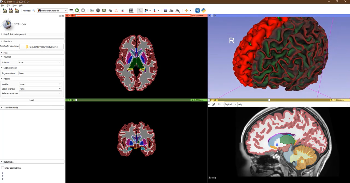 Import volumes, segmentations, surfaces from FreeSurfer then edit and analyze them. video > learn more >