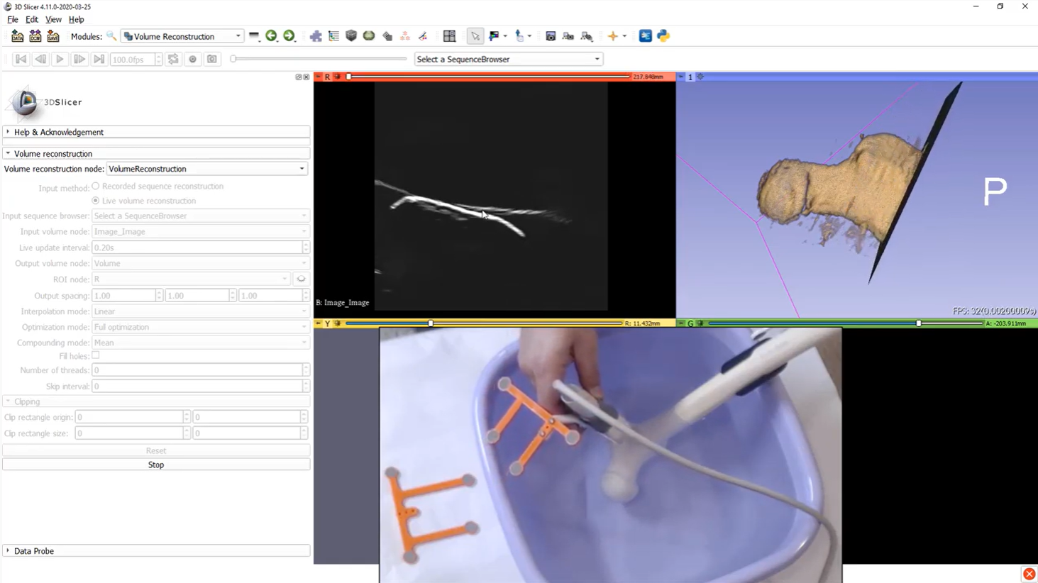 3D volume is reconstructed from real-time tracked ultrasound using SlicerIGT and SlicerIGSIO extensions video > learn more >