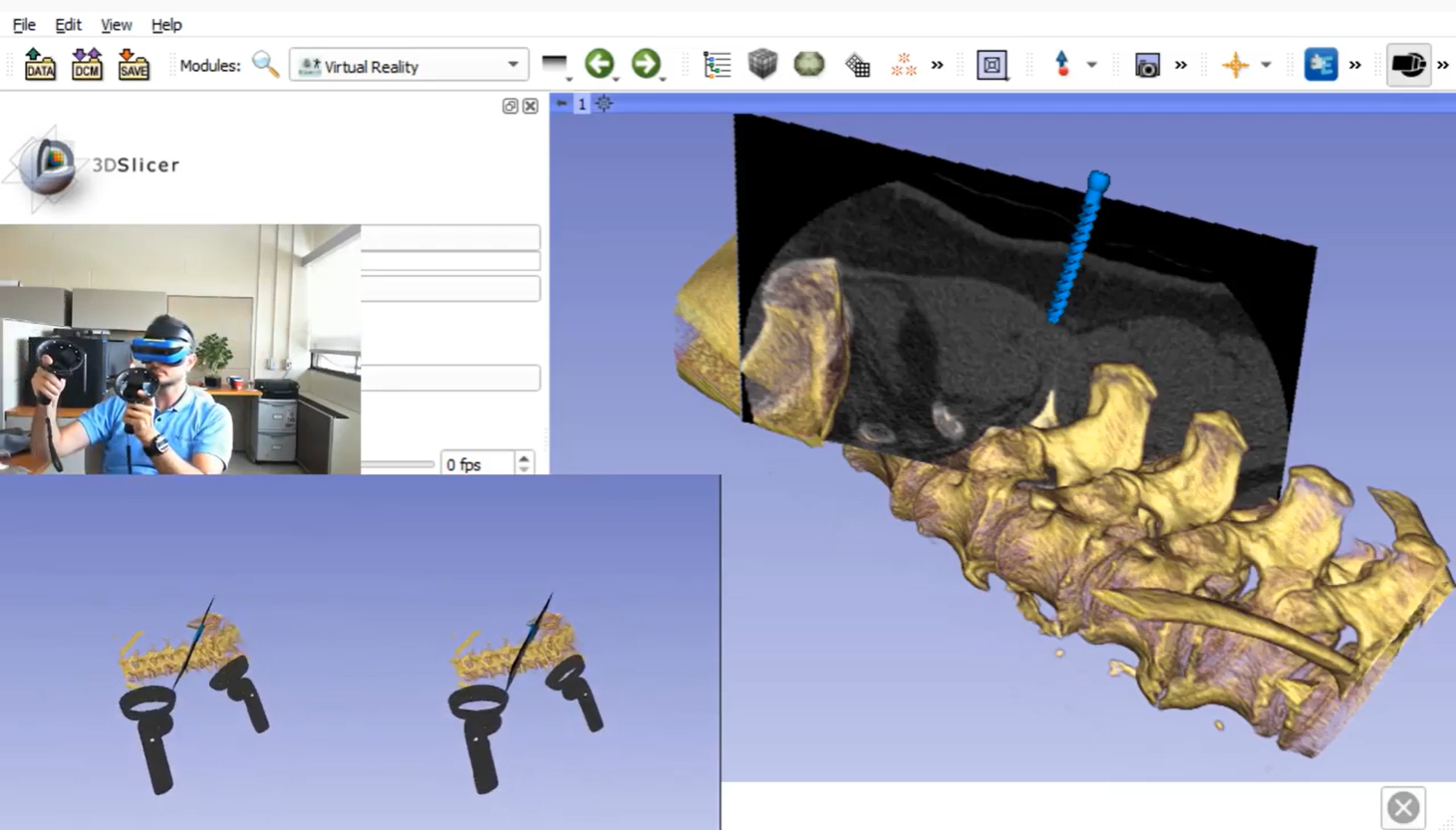 Everything that is shown in the 3D view (volume rendering, real-time surgical navigation, tractography, etc.) can be displayed and interacted with in virtual reality using SlicerVR extension. video > learn more >
